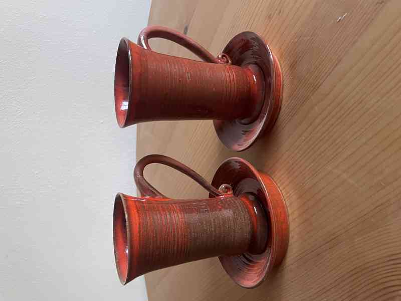 Prodám sadu dvou keramických hrnků s podšálky v tmavě červeném / hnědém odstínu. Pěkný, jednotný design, zachovalý stav, bez prasklin a odštěpků.