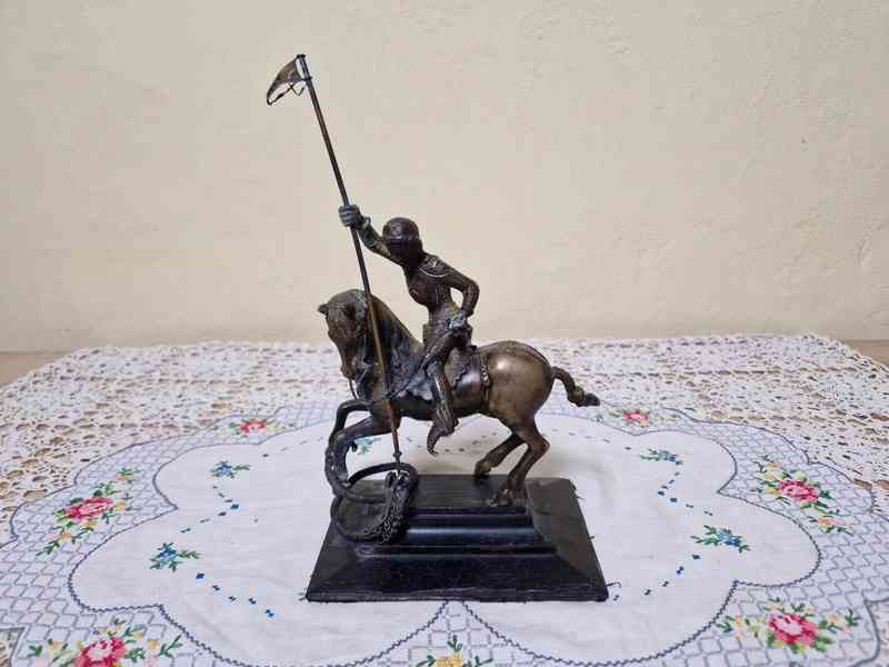 Krásná velmi stará bronzová Socha, Svatý Jiří na koni bojující s Drakem, kvalitní zpracování.