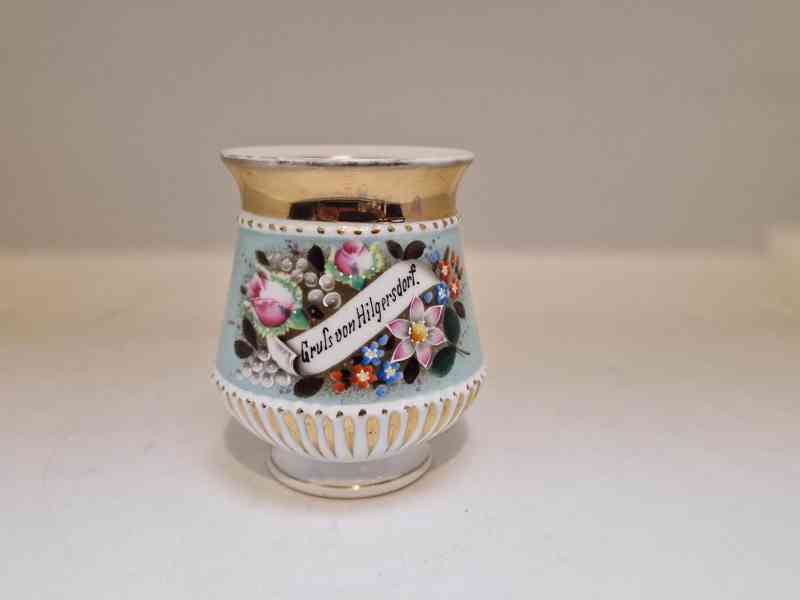 Hezký starý malovaný porcelánový Hrnek Mušlák.