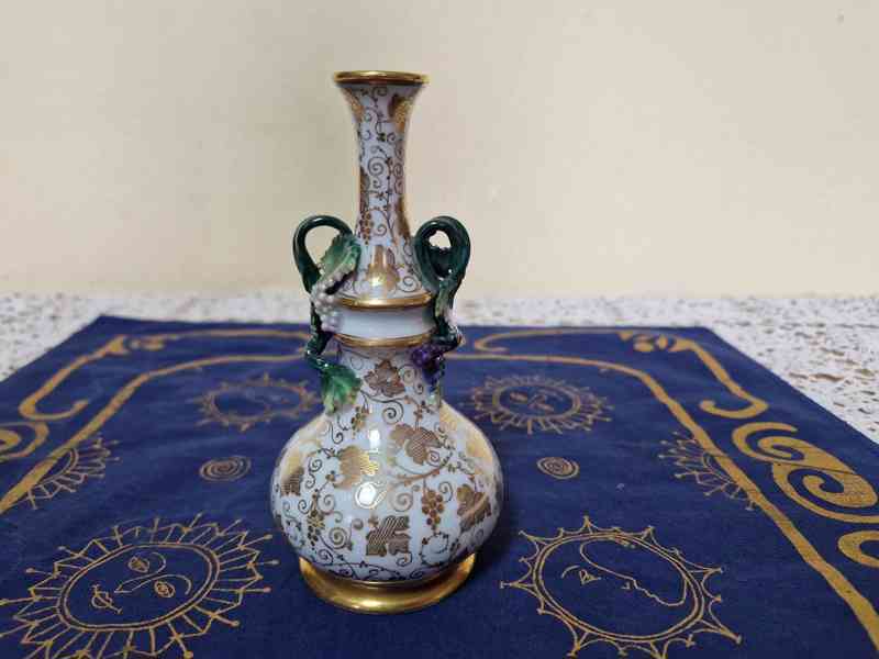 Krásná zlacená plasticky zdobená Váza, pestře malovaná, pozdní biedermeier - Loket, Značeno Loket, kolem pol. 19 stol.