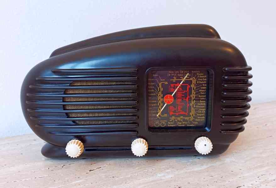 Rádio, které se vyrábělo v letech 1953 1957, výrobce Tesla n.p., bylo pečlivě zrenovováno, jeho stav je excelentní, a je plně funkční na všech třech vlnových rozsazích. Ve své době mělo přezdívku kapka.