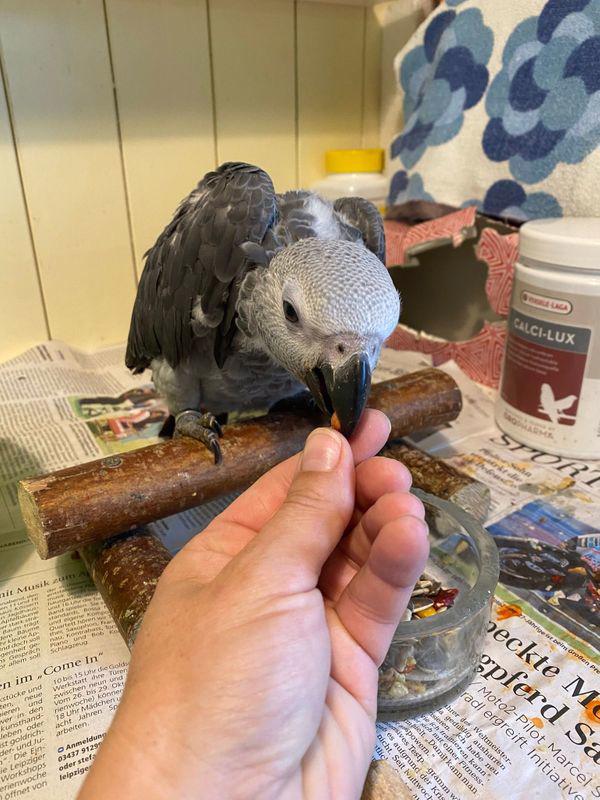 Papoušek šedí konžský k adopci. Hodně mluví, umí počítat od 1 do 5, říká ahoj, čau, dej mi pusu, miluji tě, zvoní na telefon, dodává se s velkou klecí s hrací deskou, 2 a půl roku starý. Papoušek s uzavřenými příčkami, krotký a v perfektním stavu peří.