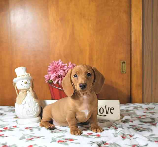 Hledáte roztomilé štěňátko k adopci zrovna včas na svátky, nebo perfektní vánoční dárek pro někoho? Pokud ano, hledáte na správném místě! Jsem rozkošné štěňátko mini jezevčíka, které hledá svou věčnou rodinu. S mýma jiskřivýma očima a rozkošným dováděním si jistě okamžitě získám vaše srdce! Jsem vychovávána s velkou péčí a pozorností a už jsem zvyklá na malé děti, takže se skvěle hodím, ať už hledáte společníka nebo rodinného mazlíčka! Moji lidé mě průběžně informují o očkování a odčervování, abych byla připravena vběhnout do vašeho srdce a domova a naplnit váš život radostí a štěněčími polibky! Pokud si myslíte, že bych pro vás mohla být to pravé štěně, zavolejte prosím mým lidem pro více informací. Můžete si domluvit schůzku u nás doma nebo se mých lidí zeptat na možnosti dopravy, pokud je to nutné. Nemůžu se dočkat, až se s vámi setkám a stanu se vaším novým nejlepším přítelem!