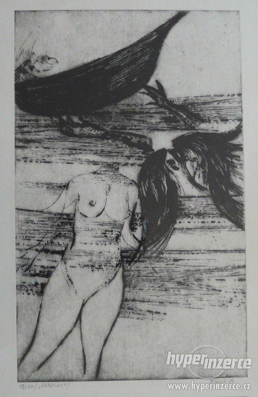 Prodám grafiku Jaroslav Klápště - suchá jehla rozměr obrazu 46,5x28,5 (rozměr papíru 60x39) Grafika z roku 1986 "Lorelei". Cena včetně zasklení.