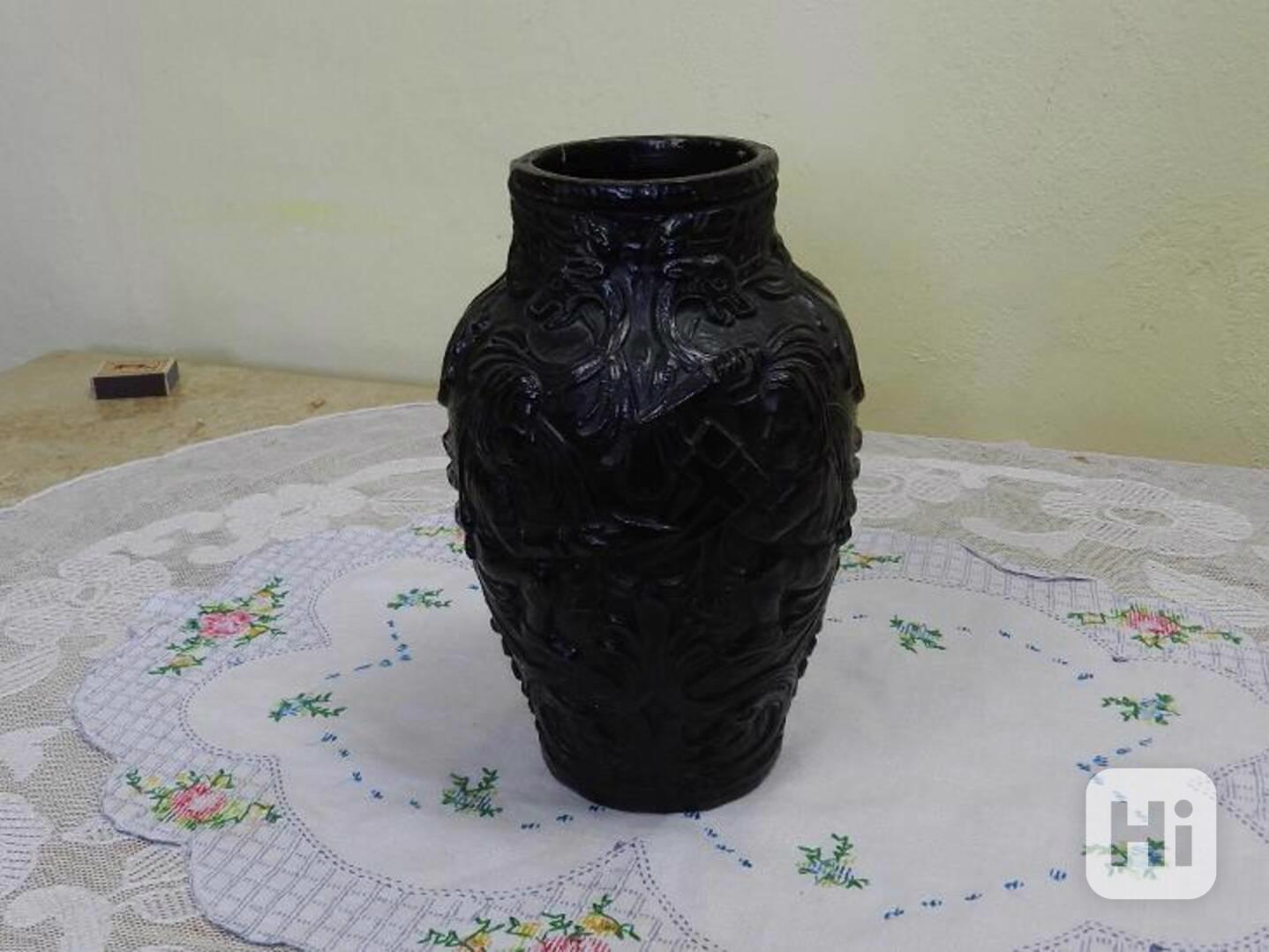 Krásná stará plastická keramická Váza s motivy Bojovníků a Draků - Johann Maresch.Výška 24cm, průměr 12,5cm, šířka 15cm, váha 1200g.