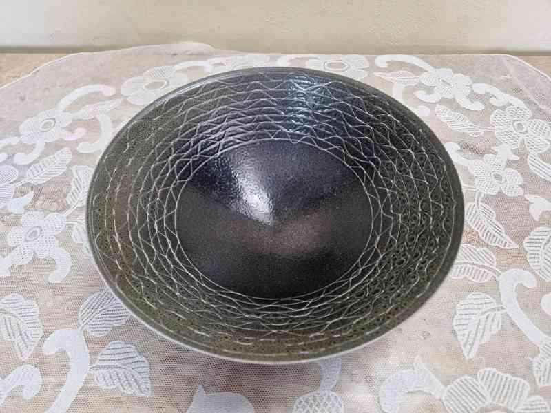 Velká stylová keramická mísa na třech nožičkách - návrh Otto Eckert ? Okruh? 2 pol. 20 stol.Rozměry: výška 11,5cm, průměr 34cm.