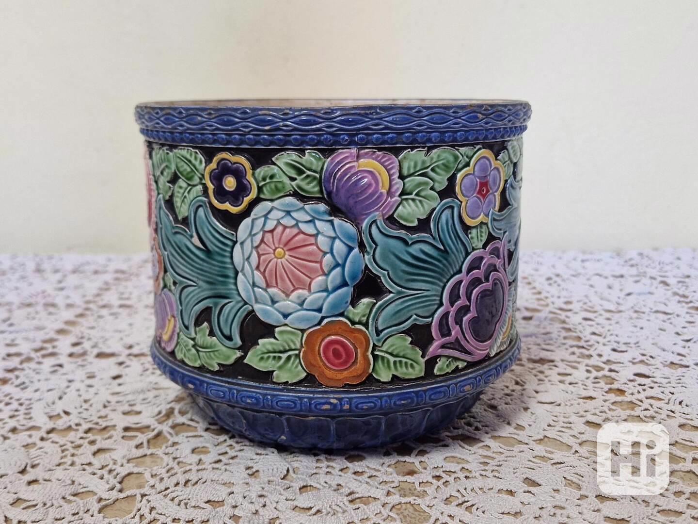 Krásný secesní barevný Květináč Květník Majolika Eichwald