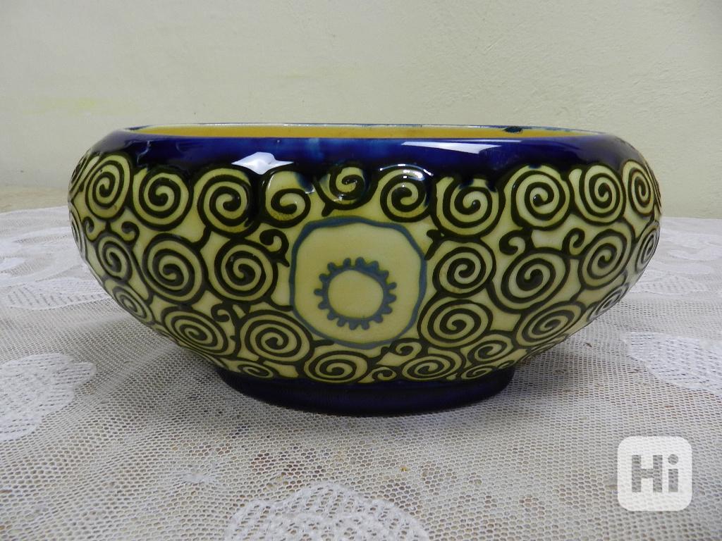 Krásná secesní malovaná keramická Žardiniera, Majolika - Ditmar Urbach.Rozměry: výška 11cm, 24 -14cm, hmotnost cca 700g.