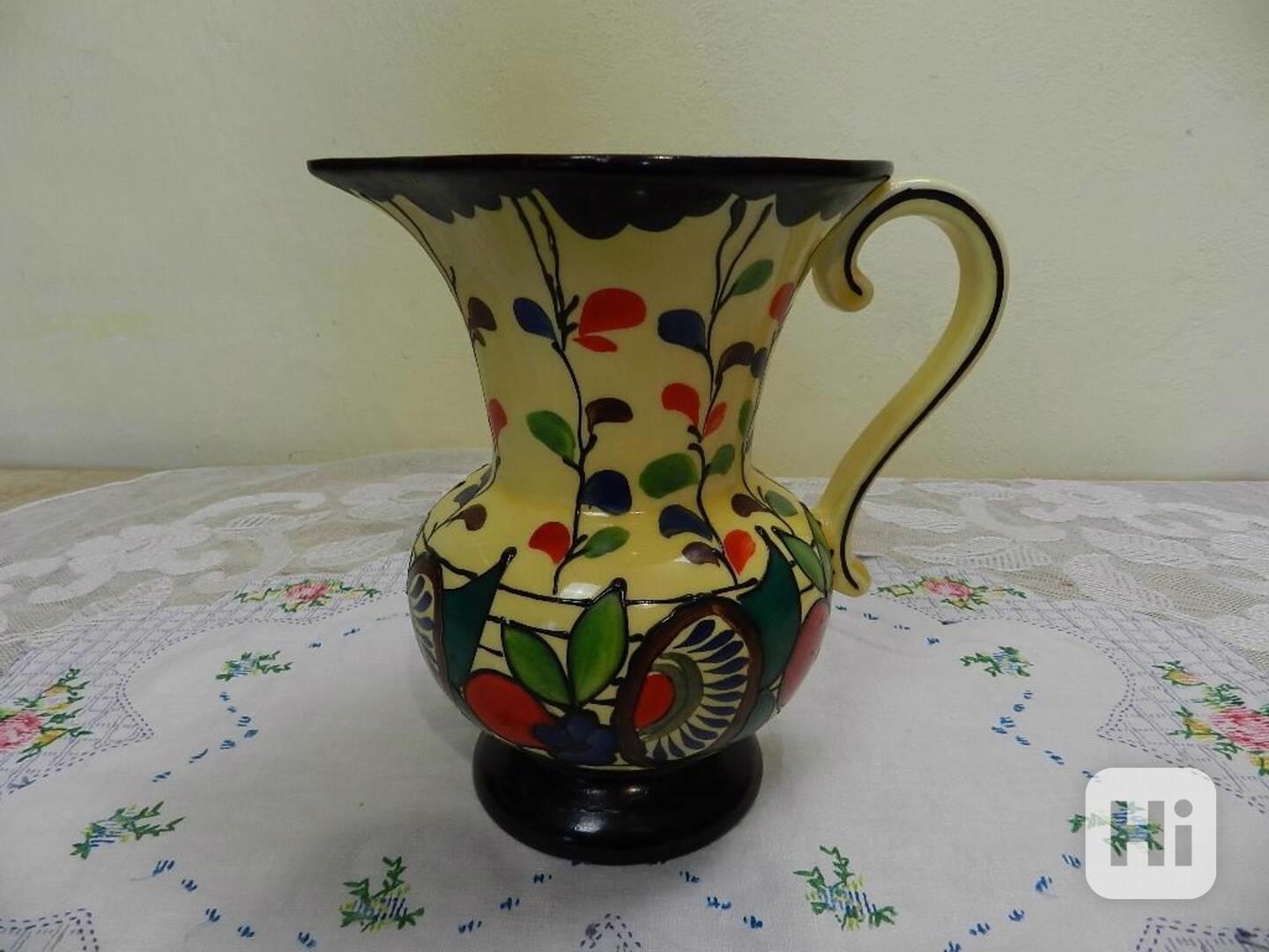 Krásný keramický pestře malovaný větší Džbánek - Ditmar Urbach, Teplice, 1 pol. 20 stol.