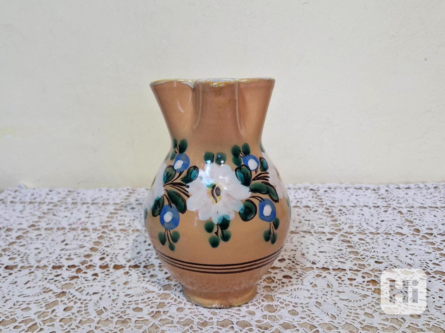 Krásný starý keramický Džbán, ruční malba - Ignác Richter, Vyškov, kolem 1860.