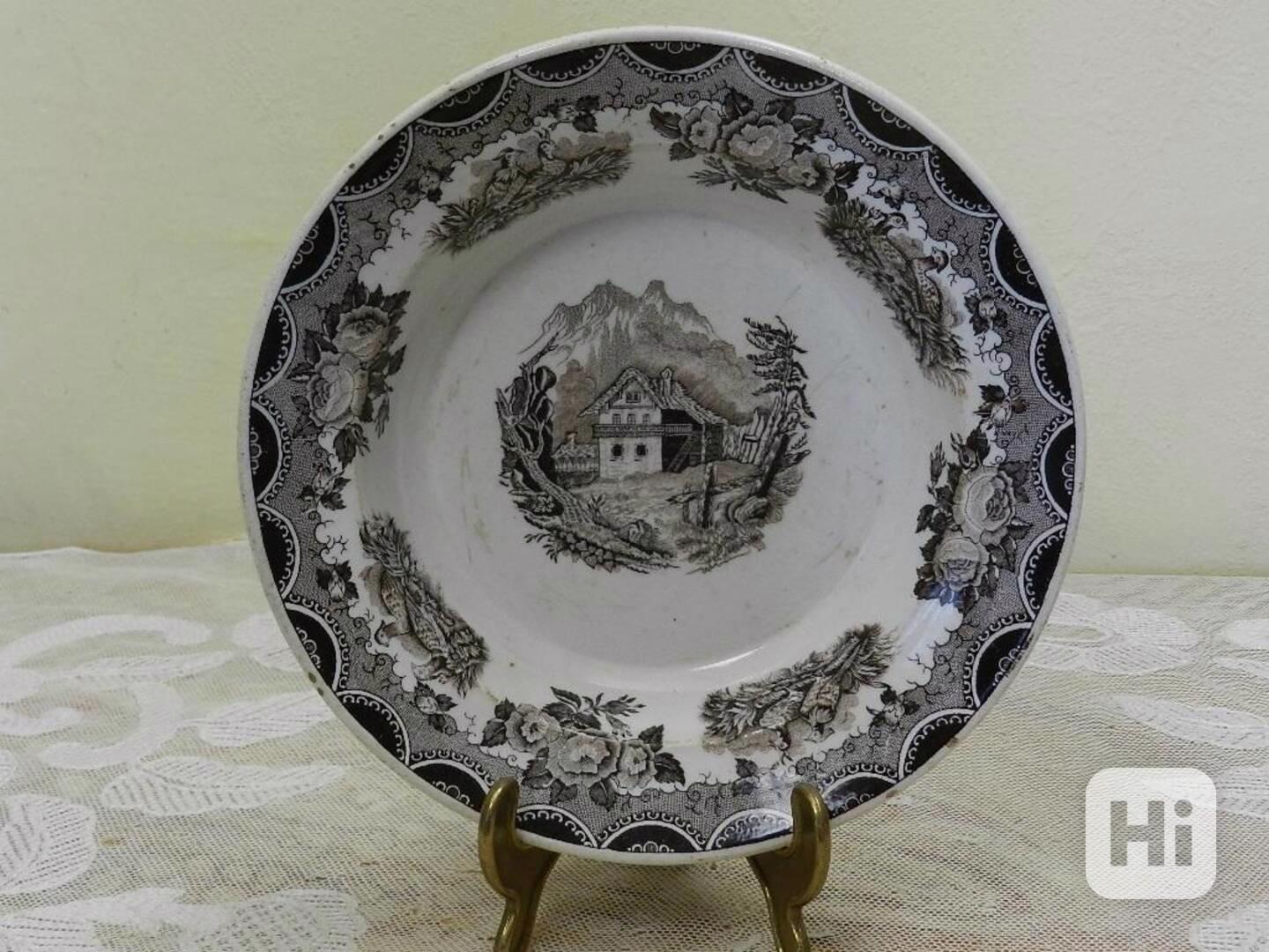 Hezký velmi starý dekorační Talíř, silnostěnné masivní provedení, hluboký profil - Hardtmuth Vídeň, 19st.