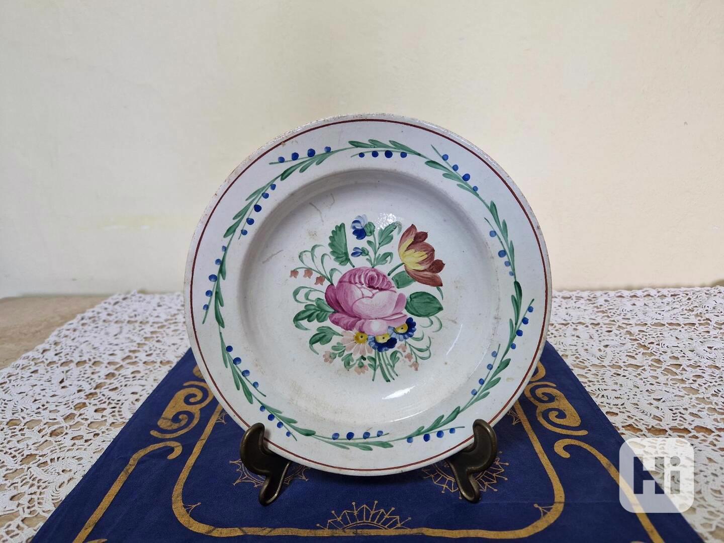 Velmi starý malovaný kameninový talíř, Klenčí, 1 třetina 19 stol.