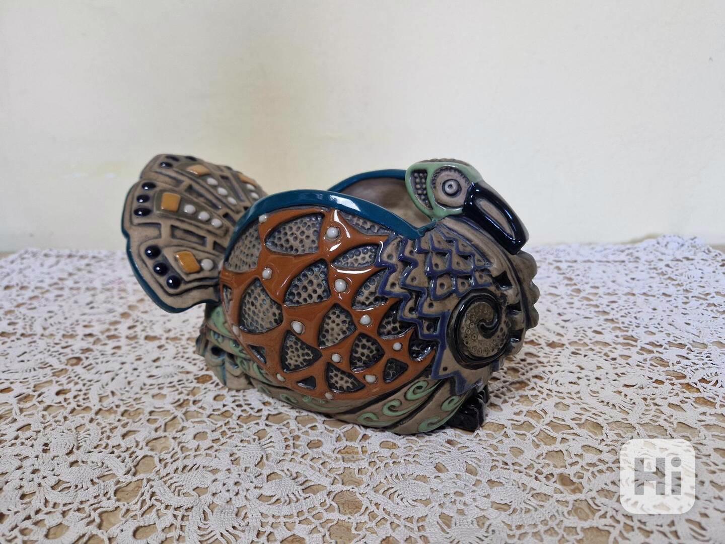 Nevídaná secení mísa ve tvaru Krocana, bohaté zdobení, plastický reliéf - Značeno, Amphora Teplice.