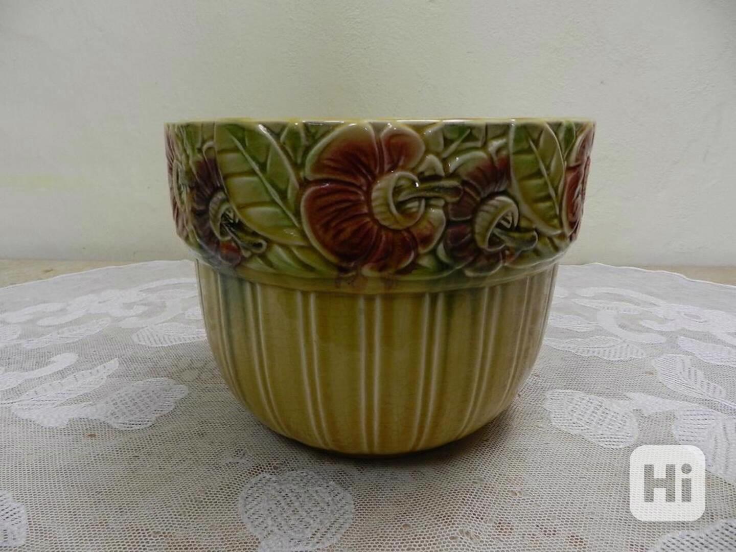 Krásný secesní malovaný keramický Květináč, květiny, Majolika, Francie.