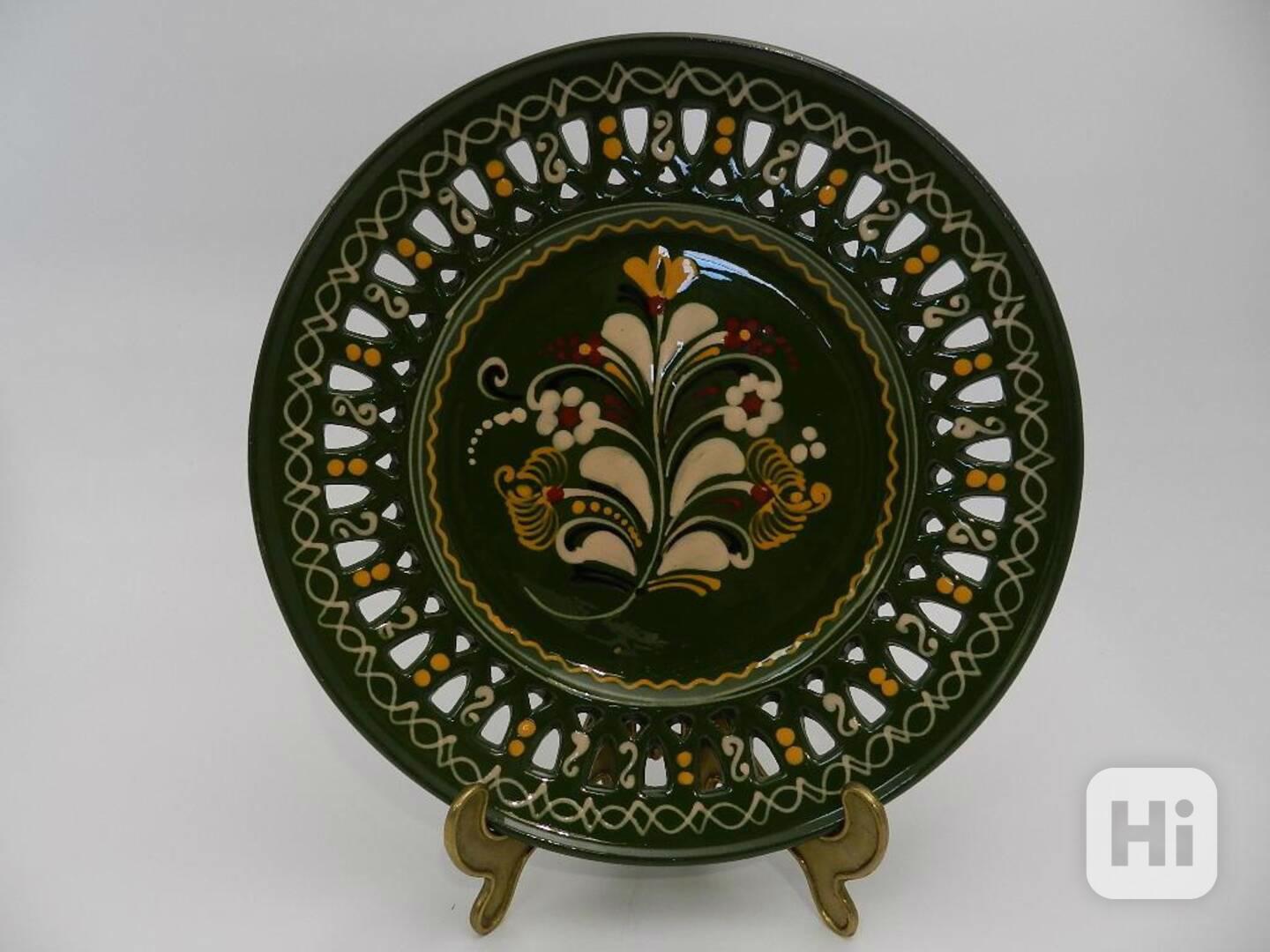 Zelený prolamovaný ručně malovaný Talíř Majolika Německo