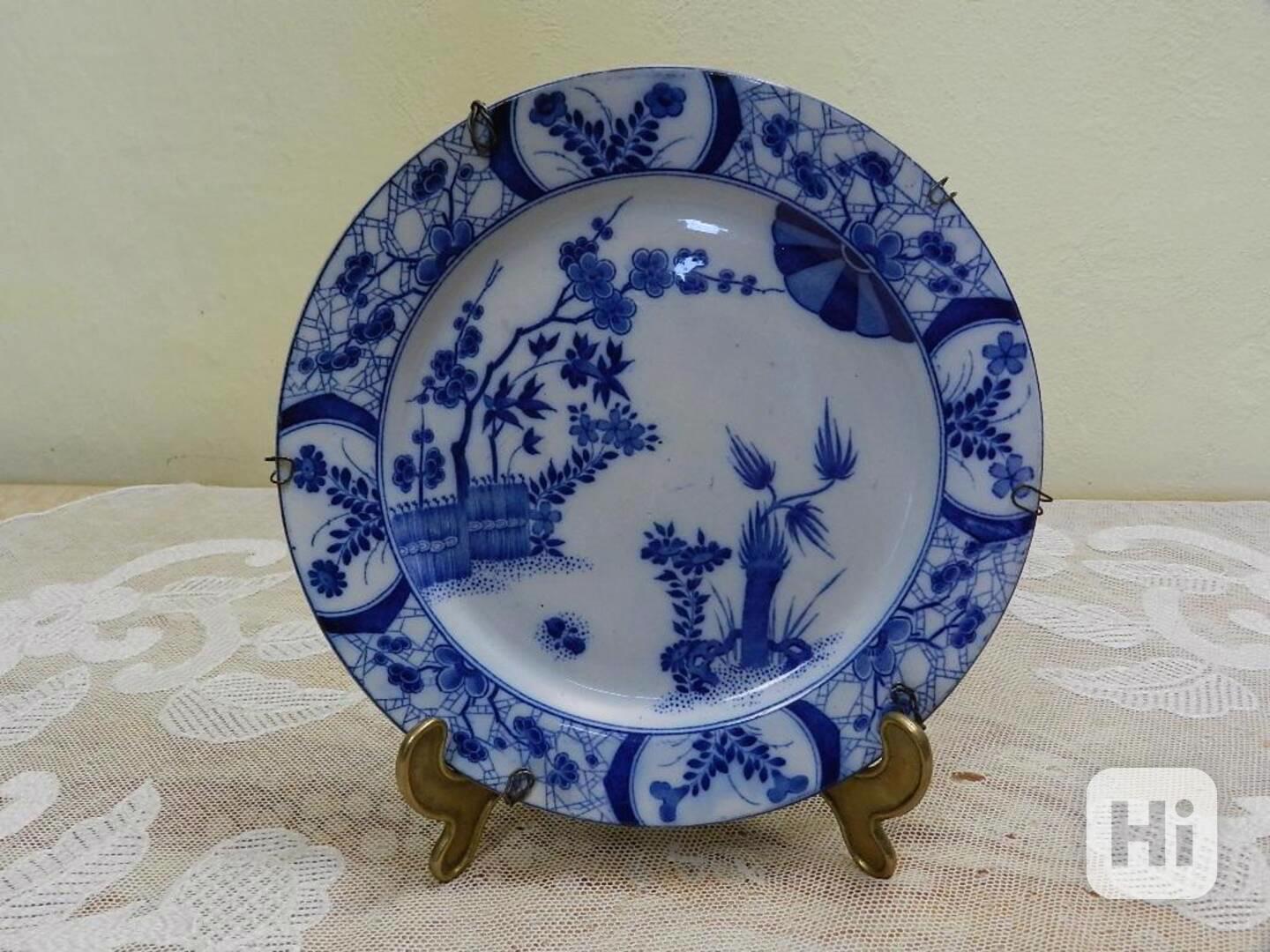Krásný kameninový Talíř, japonské motivy, kobaltový dekor - Creil Montereau Francie, 19 stol.