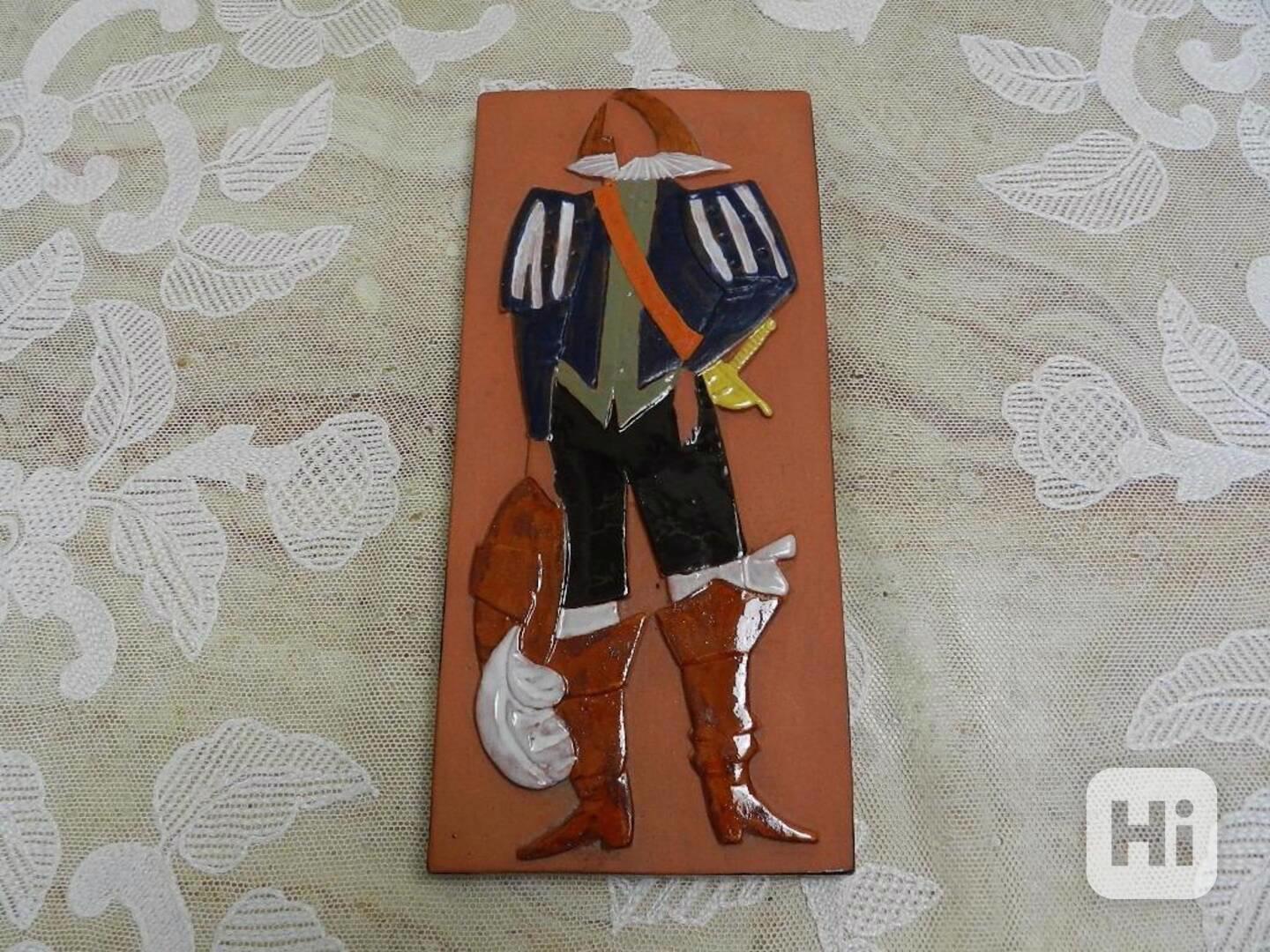 Zajímavý starý Obrázek na zeď, glazovaná terakota, Mušketýr - Keramo Vršovice, značeno.