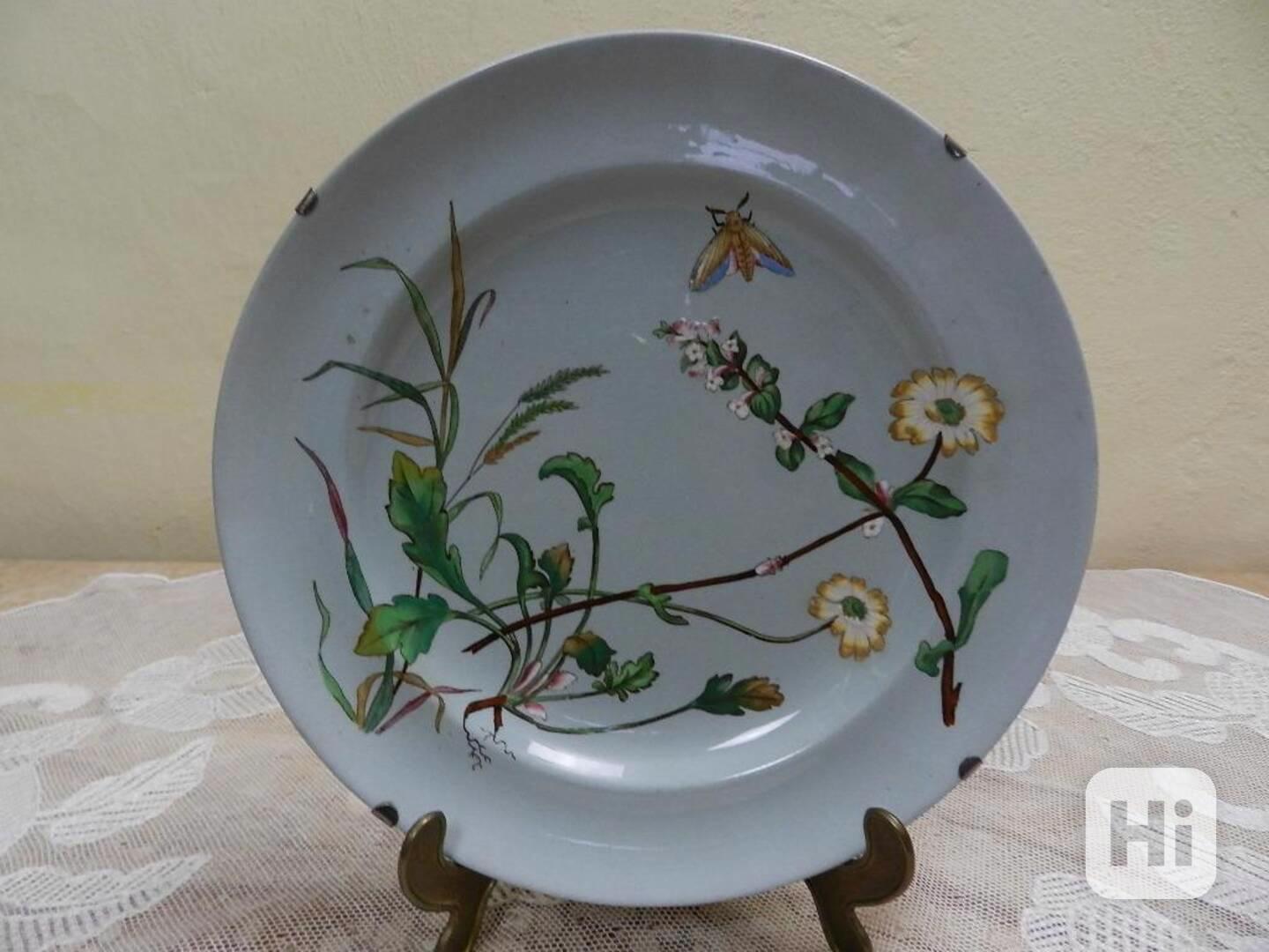 Zajímavý starý ručně malovaný keramický Talíř Květiny Hmyz