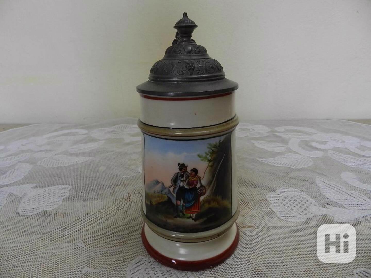 Krásný porcelánový Korbel s průsvitkou, ruční malba, kolem 1900.