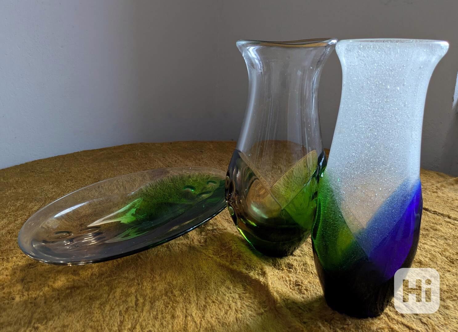 Prodám dvě vázy a mísu z hutního skla Škrdlovice.