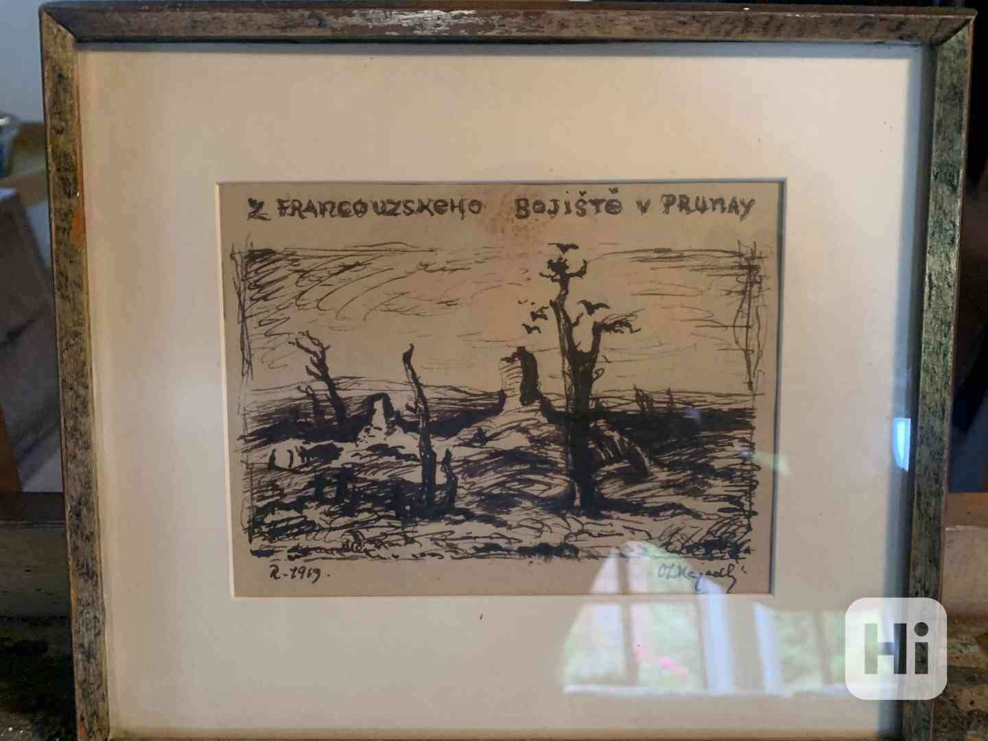 Kresba tuší, signováno s datací, autentická kresba z bojiště I. svět.války. Nejedlý vyslán do Prunay společně s Vincencem Benešem …