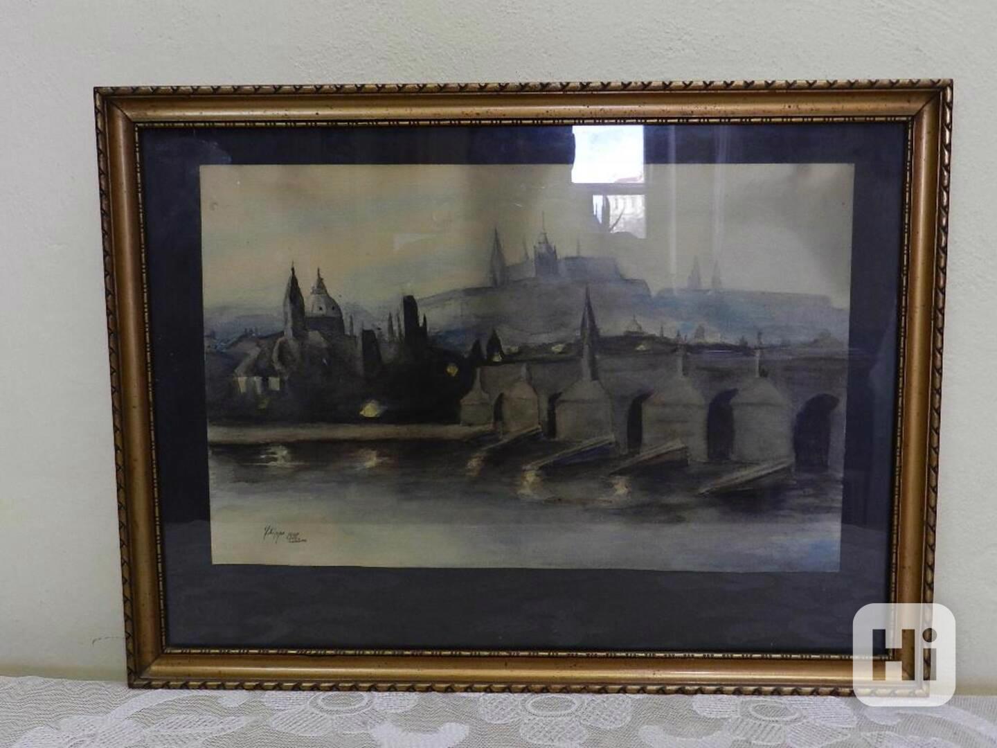 Zajímavý starý obraz, Praha Karlův Most - 1 pol 20 stol,Filippi?Rozměry: celkové 56-41,5cm, malba 43,5-28cm, zaskleno, při focení bohužel vznikají odlesky.