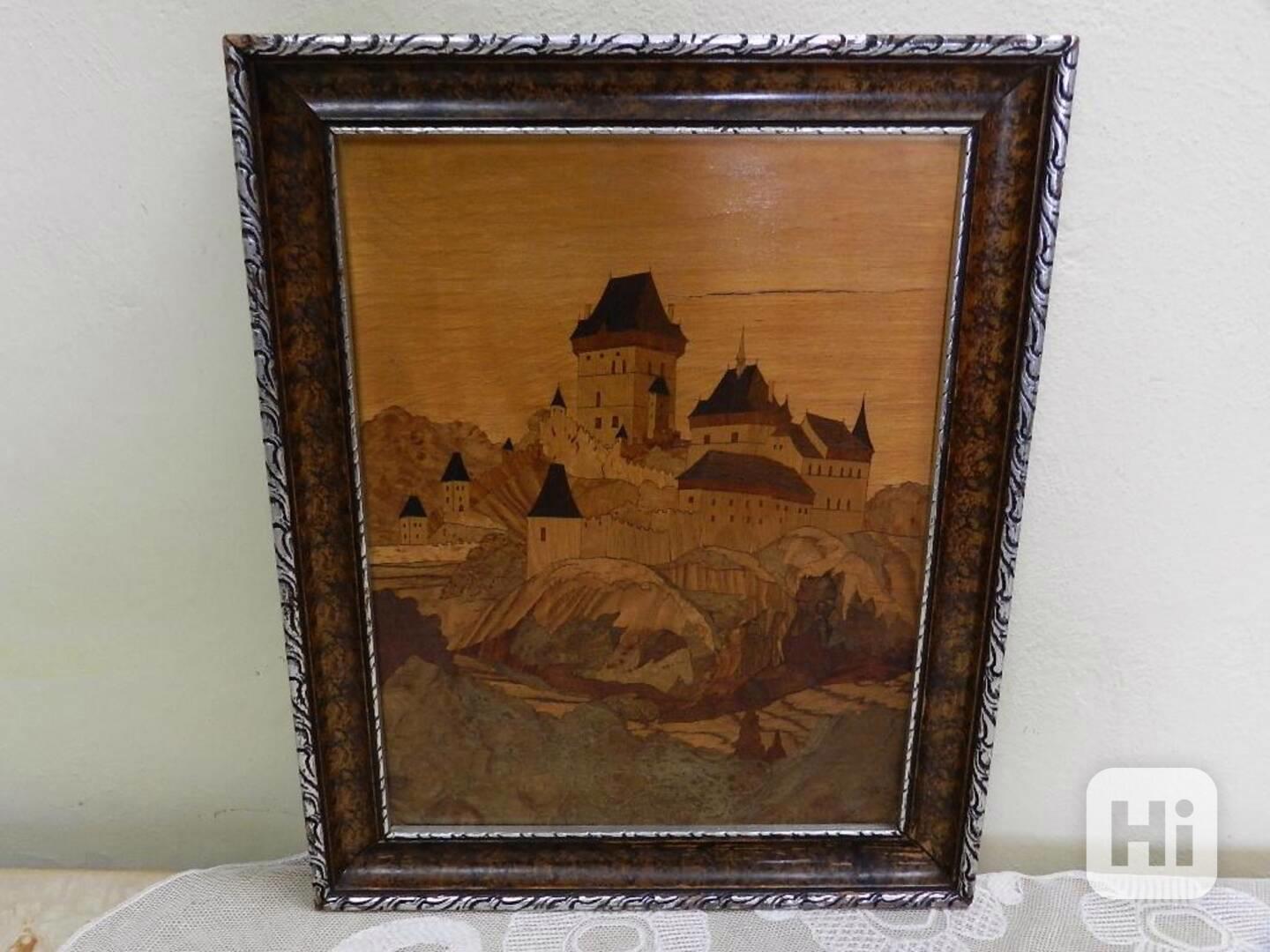 Hezký starý obrázek hrad Karlštejn intarzie