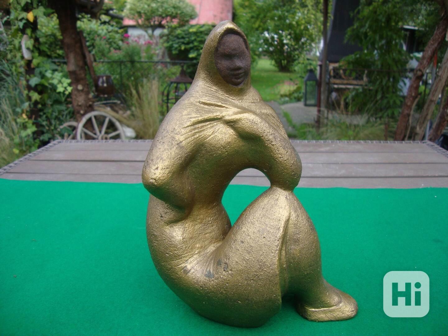 Retro socha soška dívka v šátku zlatá styl Brusel 1963 pěkná