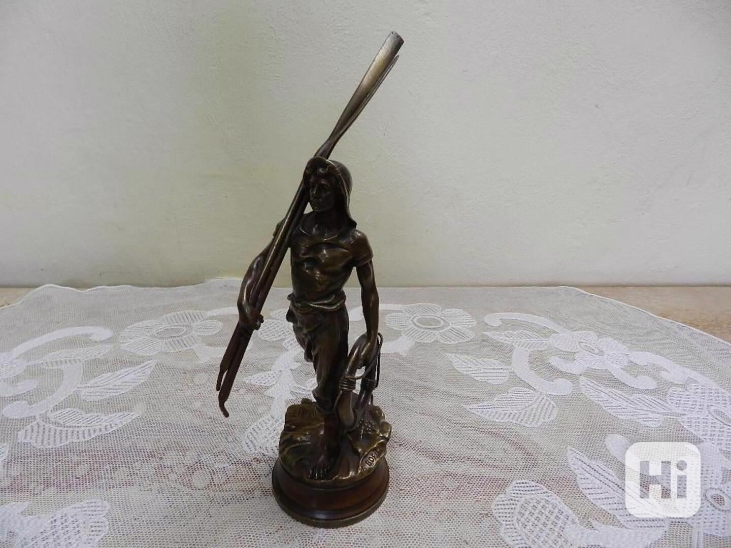 Bronzová Socha, Háček? En Avant, patinovaný bronz, pěkné zpracování i stav, signováno, značeno razítkem slévárny a číslem - Antoine Bofill, počátek 20 stol.