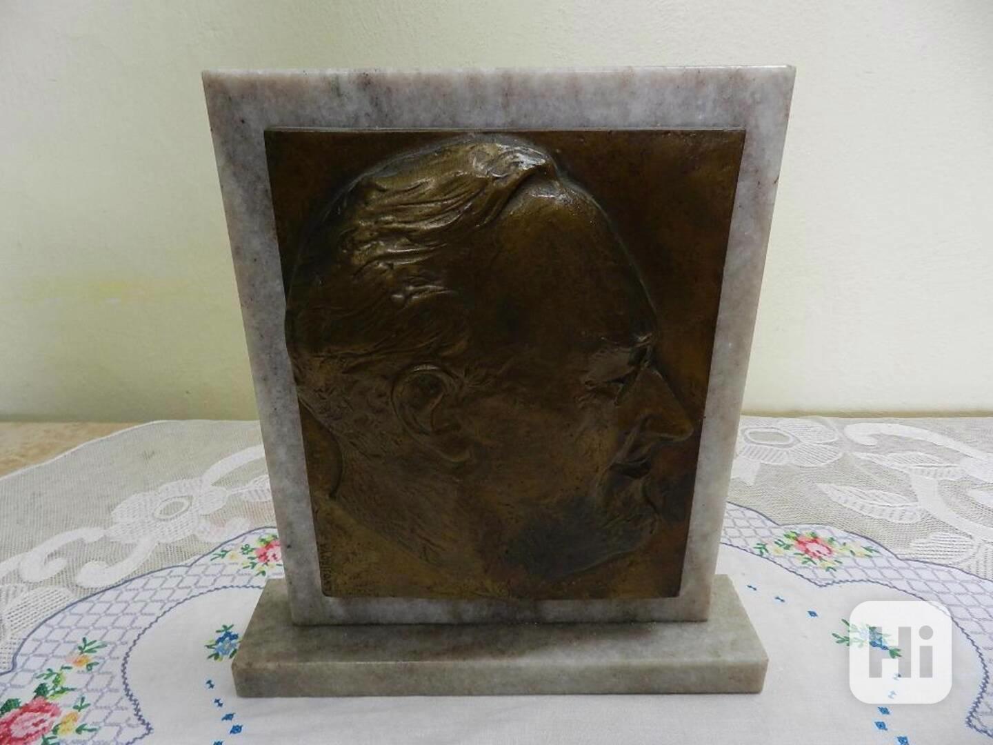Bronzový Reliéf na mramoru, Franklin Delano Roosevelt - L. Vojířová, 3 Republika, kolem 1946