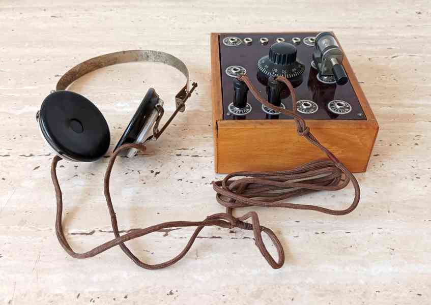 Zobrazit všeStarožitná krystalka v dřevěné bedničce z 20. let, sluchátka
