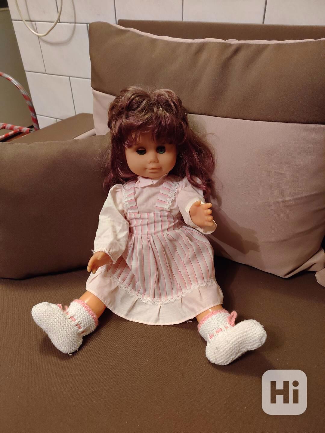 Prodám retro panenku zakoupenou v první polovině 80 let. Pevné tělo, mrkací, polohovací ruce a nohy. Velmi kvalitní provedení, originál šatičky. V dokonalém stavu, prakticky nepoužitá. Pravděpodobně Hamiro či jiný evropský výrobce z té doby. Výška 55cm.