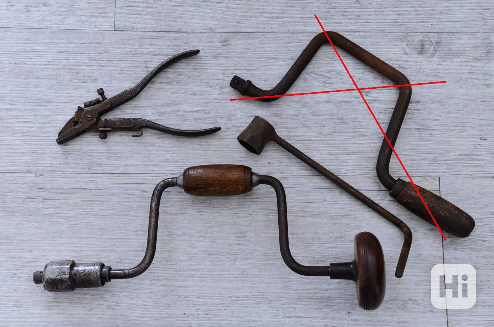 Retro sada venkov ( kosa, naklepávací stolička, pila)