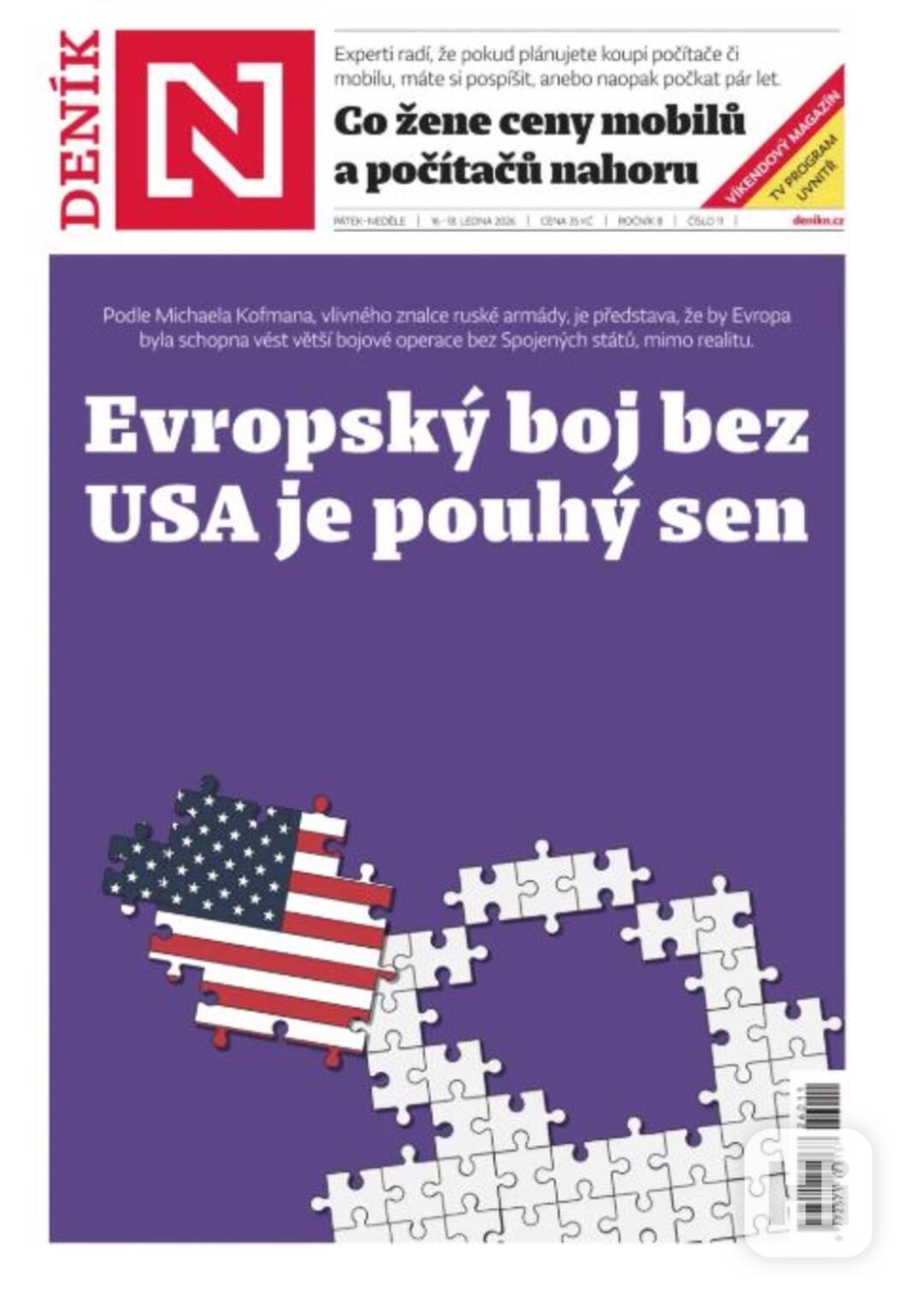 Koupím tištěné vydání novin DENÍK N ze 16.-18. ledna 2026 (titulka viz foto). Na ceně se dohodneme.