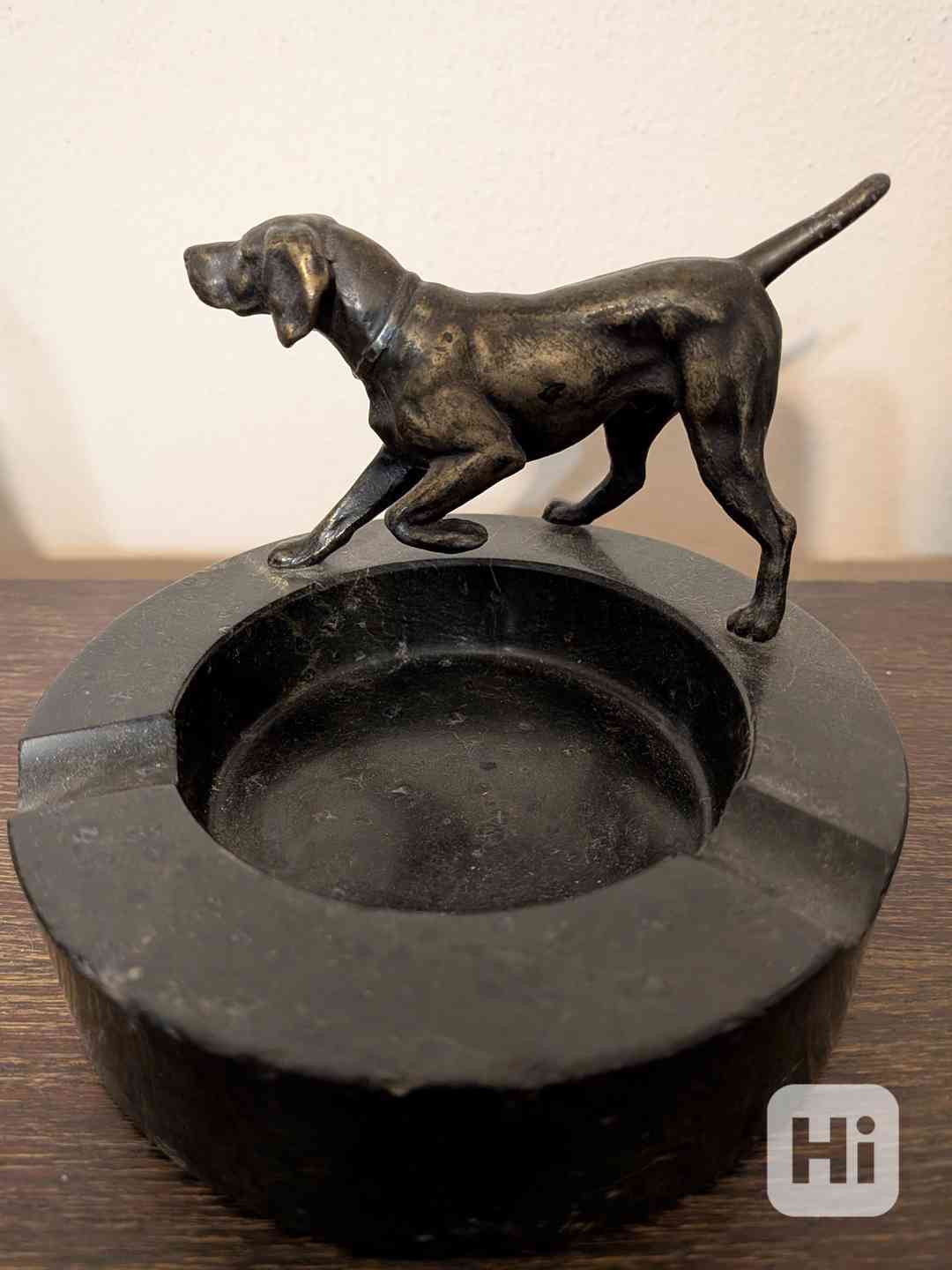 Nabízím k prodeji stylový, starý dekorační předmět z období Art Deco. Jedná se o kombinaci těžkého černého podstavce (mramor/sklo) a detailní figurky loveckého psa z patinovaného kovu.