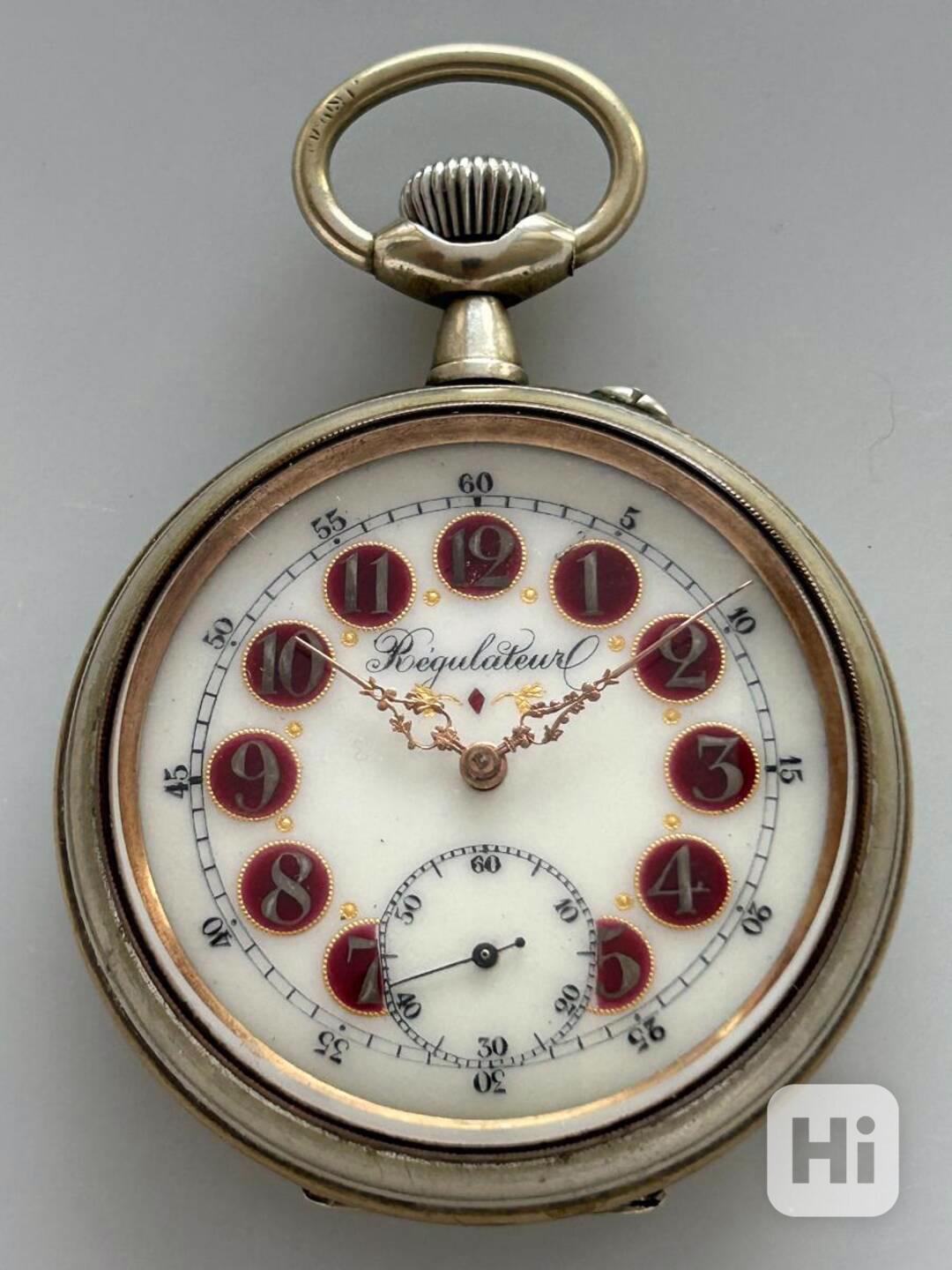 Velké 66 mm, 202 g těžké staré moc krásné železniční hodinky REGULATEUR s lokomotivou na zadni straně-