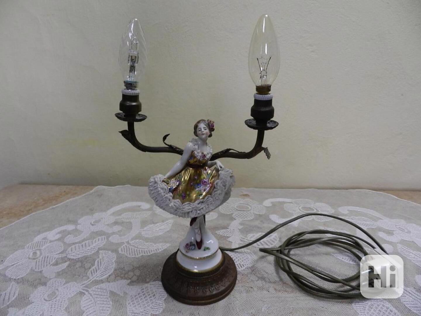 Zobrazit všeStarožitná stolní lampička z mramoru s látkovým stínidlem