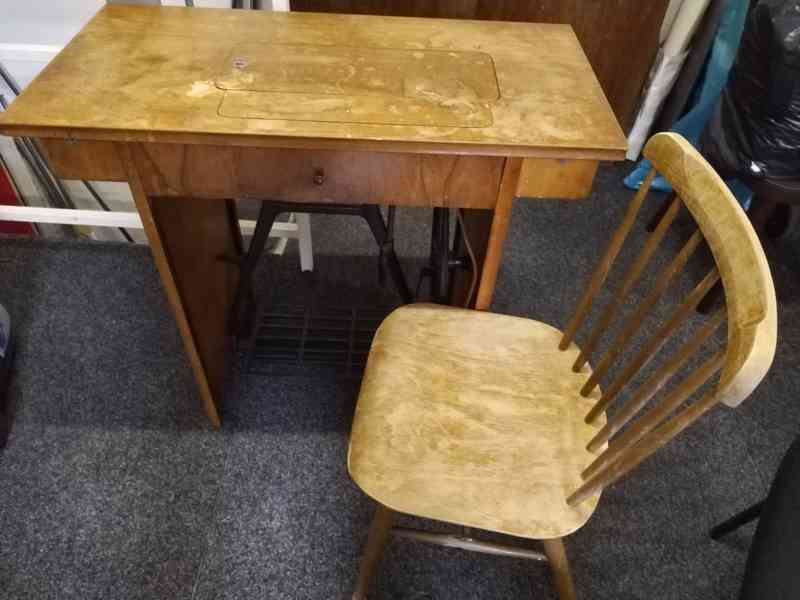 Starožitný šicí šlapací stroj se zpětnou páčkou. Šije hezky je po seřízení a prošije i ryflovinu. Pouze povrch pracovní desky je sice povrchově poškozený ale nová povrchová úprava mu dá nový nádech. Není jinak poškozený. Pouze osobní převzetí v Hodoníně 69501. Nabídněte cenu.