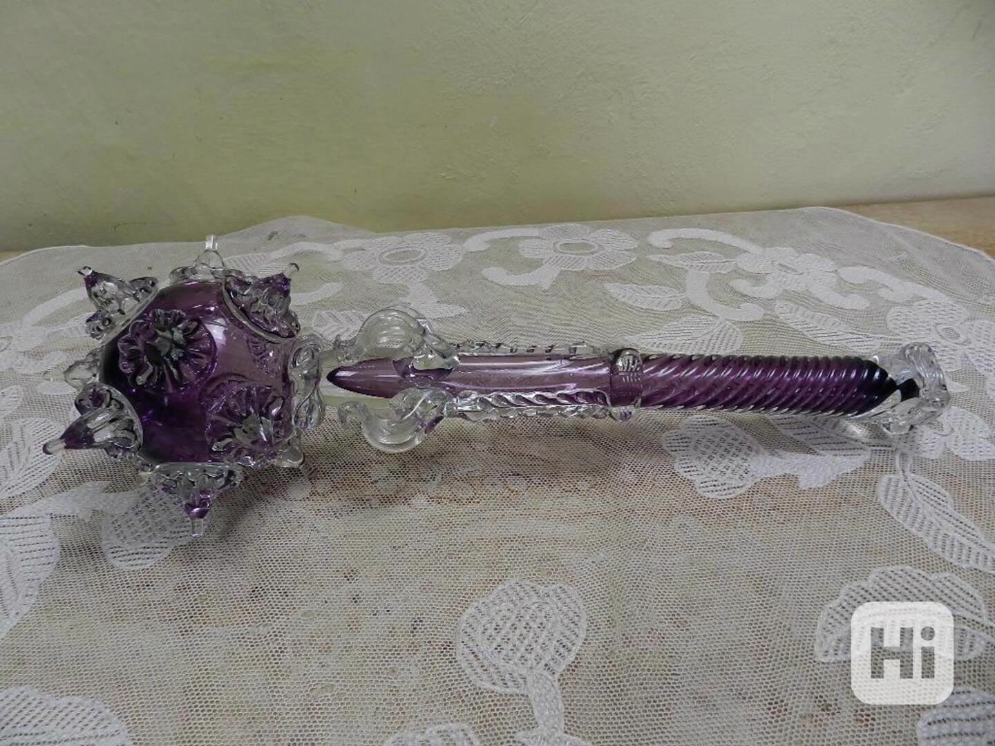 Autorský skleněný Objekt, hutně tvarované sklo, kvalitní zpracování, barva čirá a fialová - Čechy, 2 pol. 20 stol.