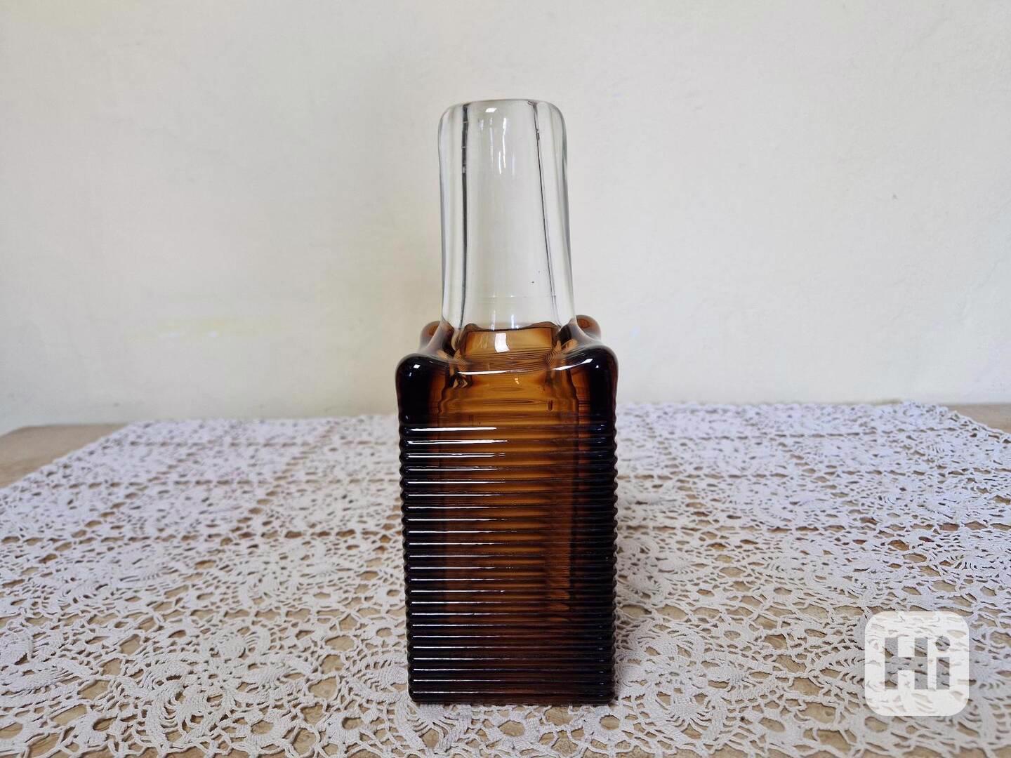 Zajímavá váza, hnědé a čiré hutně tvarované sklo, Top Stav - František Vízner, 2 pol. 20 stol.