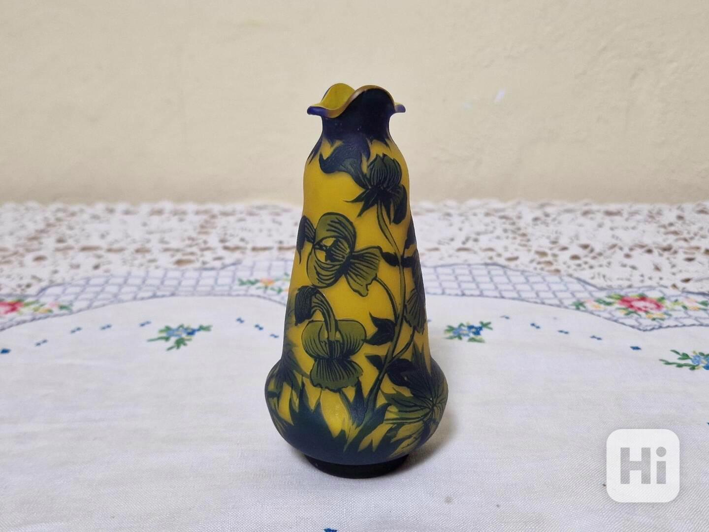 Krásná žlutá přejímaná a matovaná váza Loetz Richard, kamejové sklo, 1 čtvrtina 20 stol.