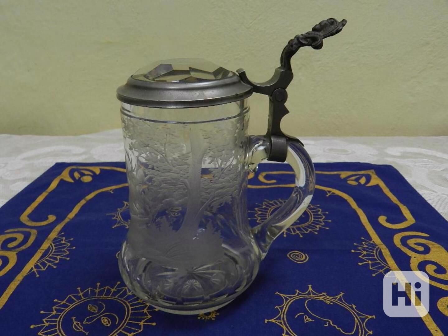 Krásný starý broušený bohatě zdobený Korbel Krýgl Jelen
