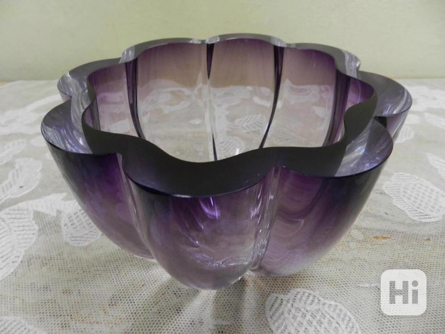 Luxusní masivní broušená Mísa, čiré a fialové sklo - Čechy, 3 třetina 20 stol.