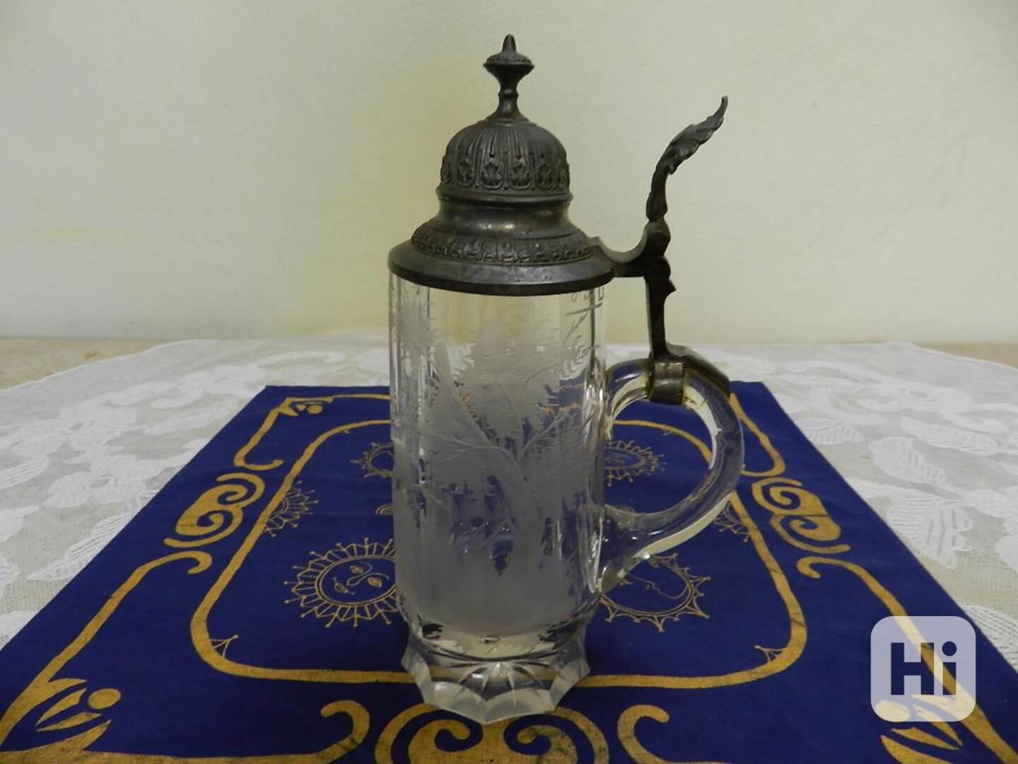 Starý broušený bohatě zdobený Korbel Krýgl cejch Jelen
