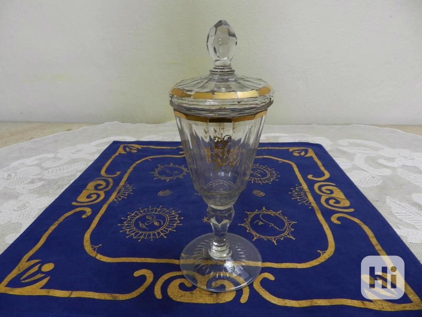 Krásný barokní Pohár s poklopem, kupa broušená do fazet, zlacení - Čechy, 18 stol.