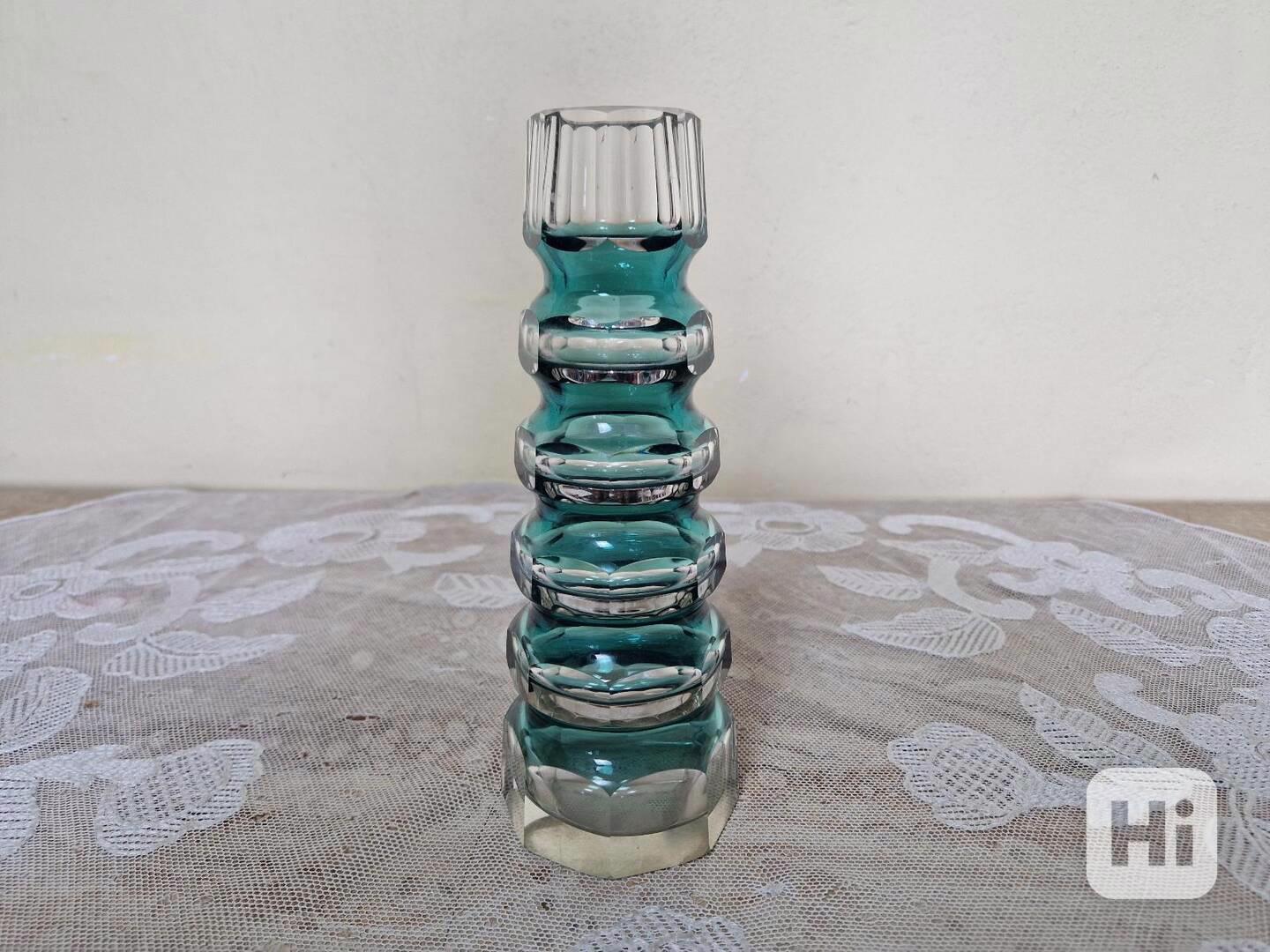 Autorská broušená váza, čiré a zeleno-modré sklo- severni Čechy, 20 stol.