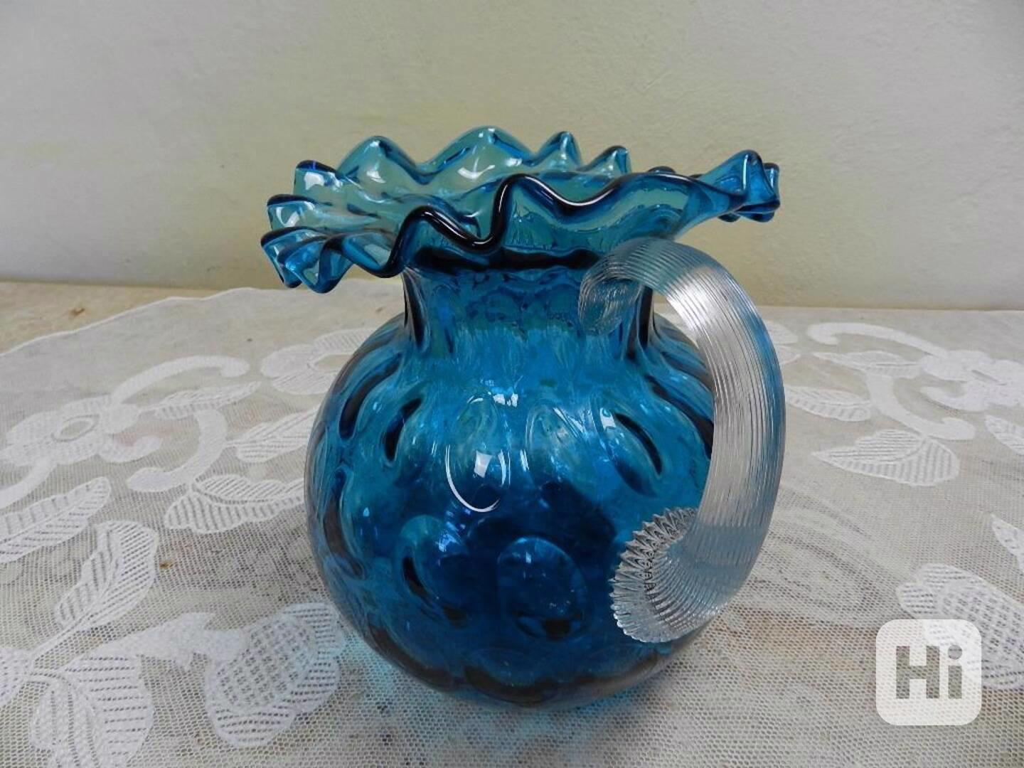 Krásný starý modrý Džbán s optickými čočkami, ruční práce.