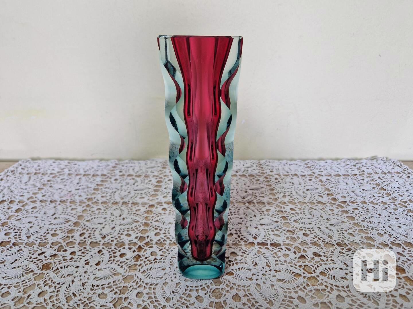 Broušená Váza Oldřich Lipský, zajímavá barva, berylová s červeno-rudou - Exbor, 60 léta, 20 stol.
