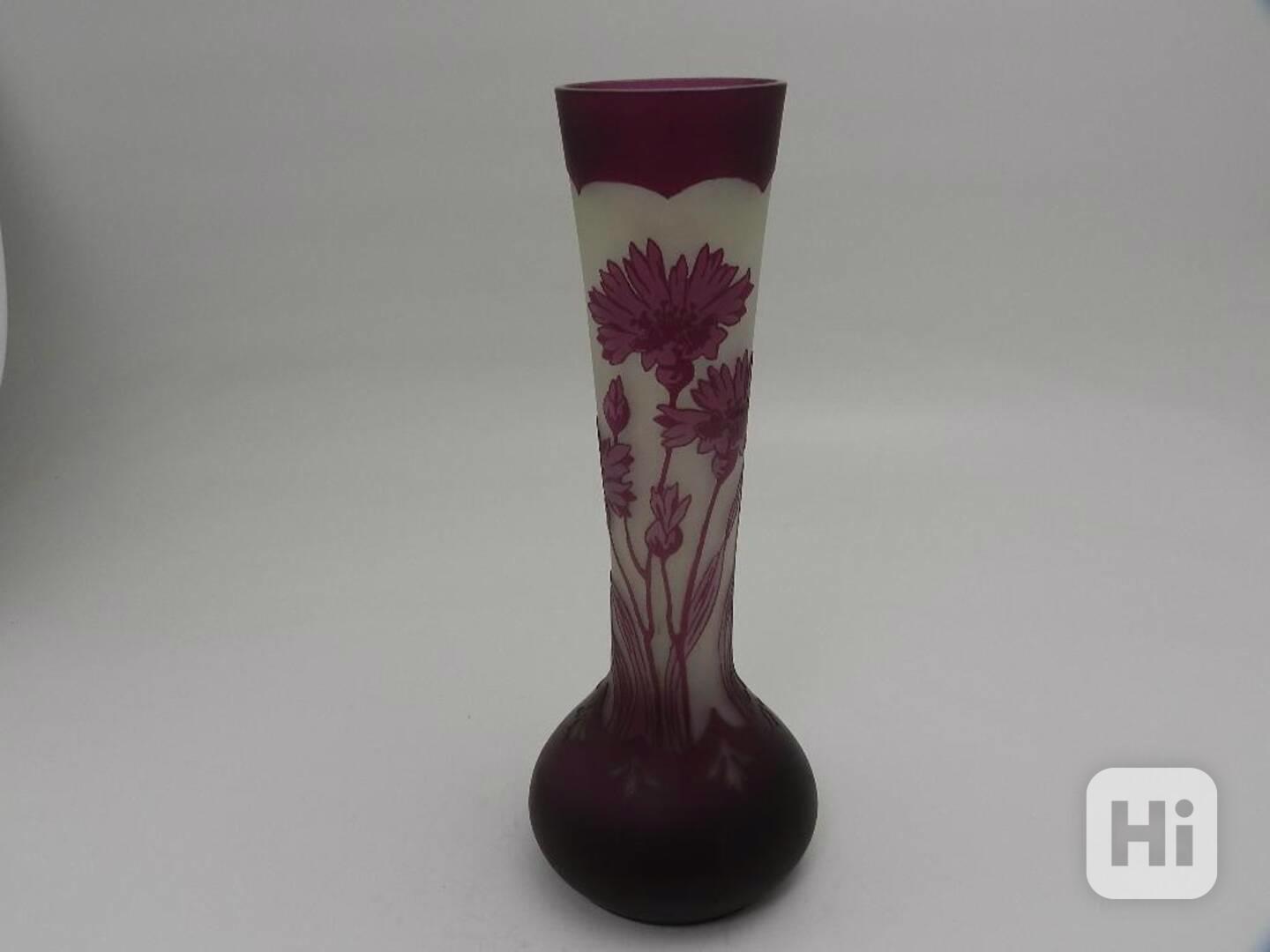 Hezká secesní fialová autorská Váza, vrstvené broušené sklo, matovaný povrch.