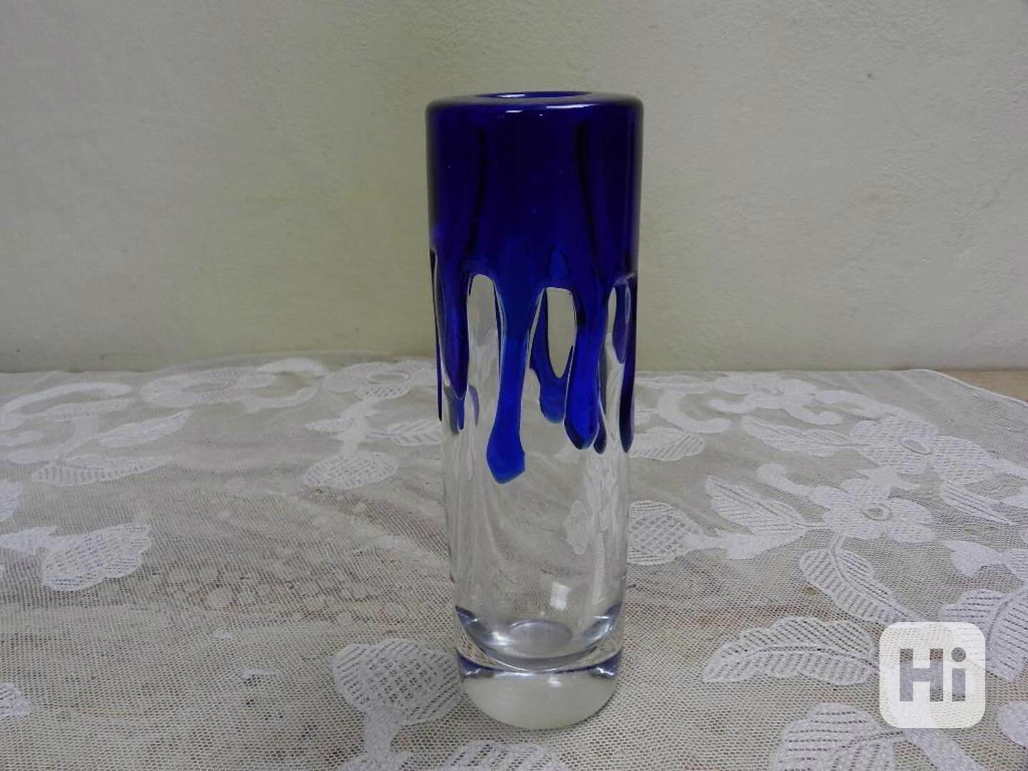 Váza, čiré a modré hutně zpracované sklo - J. Svoboda Škrdlovice, 60 léta 20 stol.